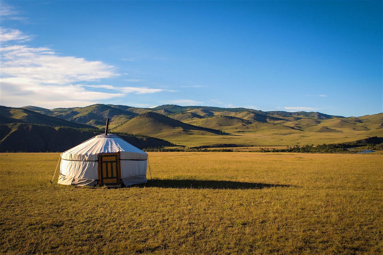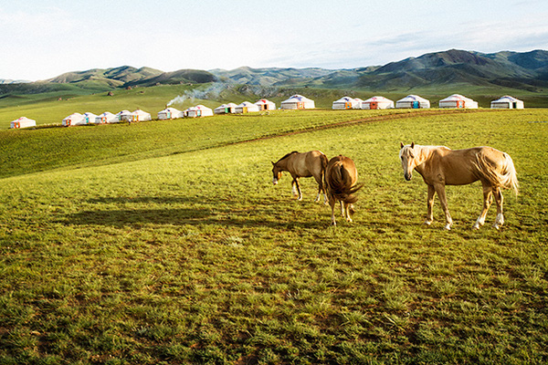 Sống cùng hơn 250 ngày nắng trong một năm, dân du mục Mông Cổ tự hào gọi đất nước mình là vùng đất của bầu trời xanh vô tận. Nổi bật giữa cánh đồng cỏ xanh ngút ngàn là những ngôi nhà di động của người dân du mục nằm rải rác trong cảnh quan rộng lớn này.