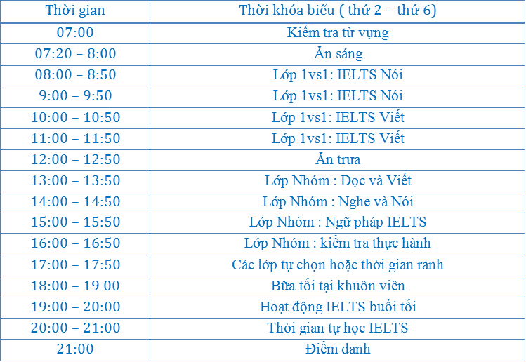- Các bữa ăn sáng, trưa, tối buffet theo lịch của trường.